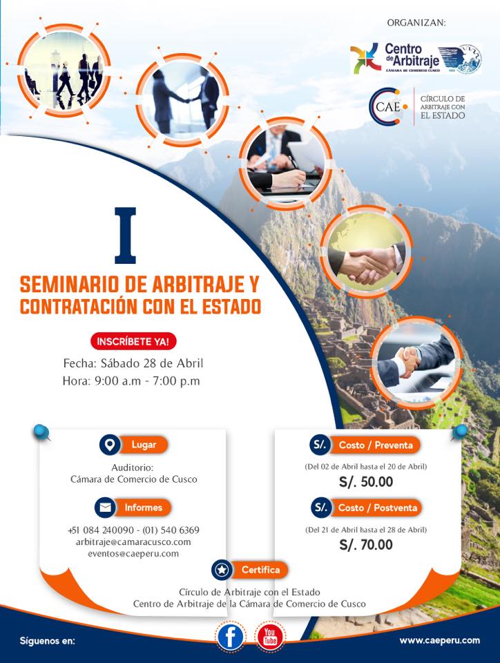 I Seminario de Arbitraje y Contratación con el Estado – CUSCO Posteado el 28 de Abril, 2018 CAE Categoria Leer, más sobre: Seminarios Comparte esto: Facebook