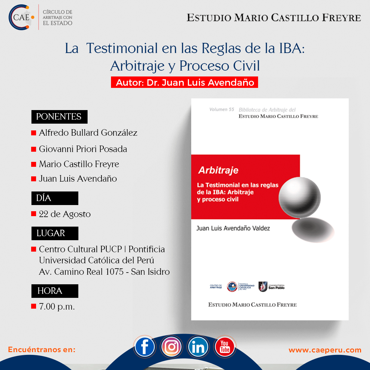 La Testimonial en las Reglas de la IBA: Arbitraje y Proceso Civil Posteado el 22 de Agosto, 2018 CAE Categoria Leer, más sobre: Seminarios Comparte esto: Facebook