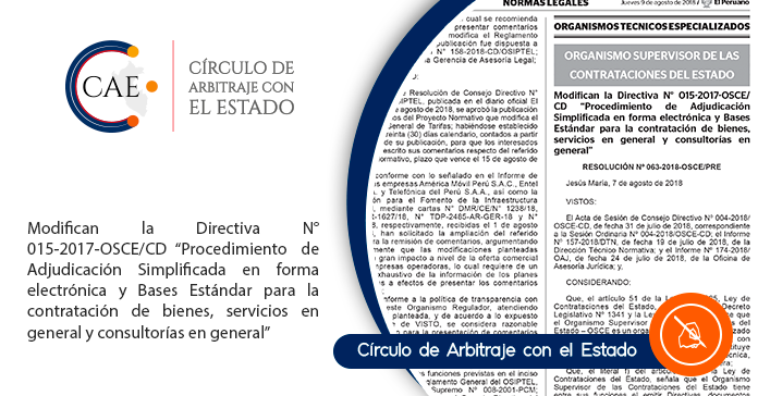Seguir LeyendoModifican la Directiva N° 015-2017-OSCE/CD “Procedimiento de Adjudicación Simplificada en forma electrónica y Bases Estándar para la contratación de bienes, servicios en general y consultorías en general”