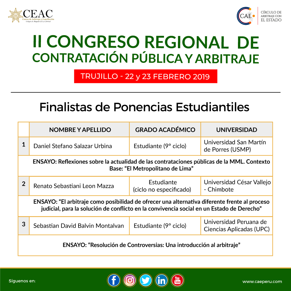 Finalistas de Ponencias Estudiantiles Posteado el 16 de Febrero, 2019 CAE Categoria Leer, más sobre: Noticias Comparte esto: Facebook