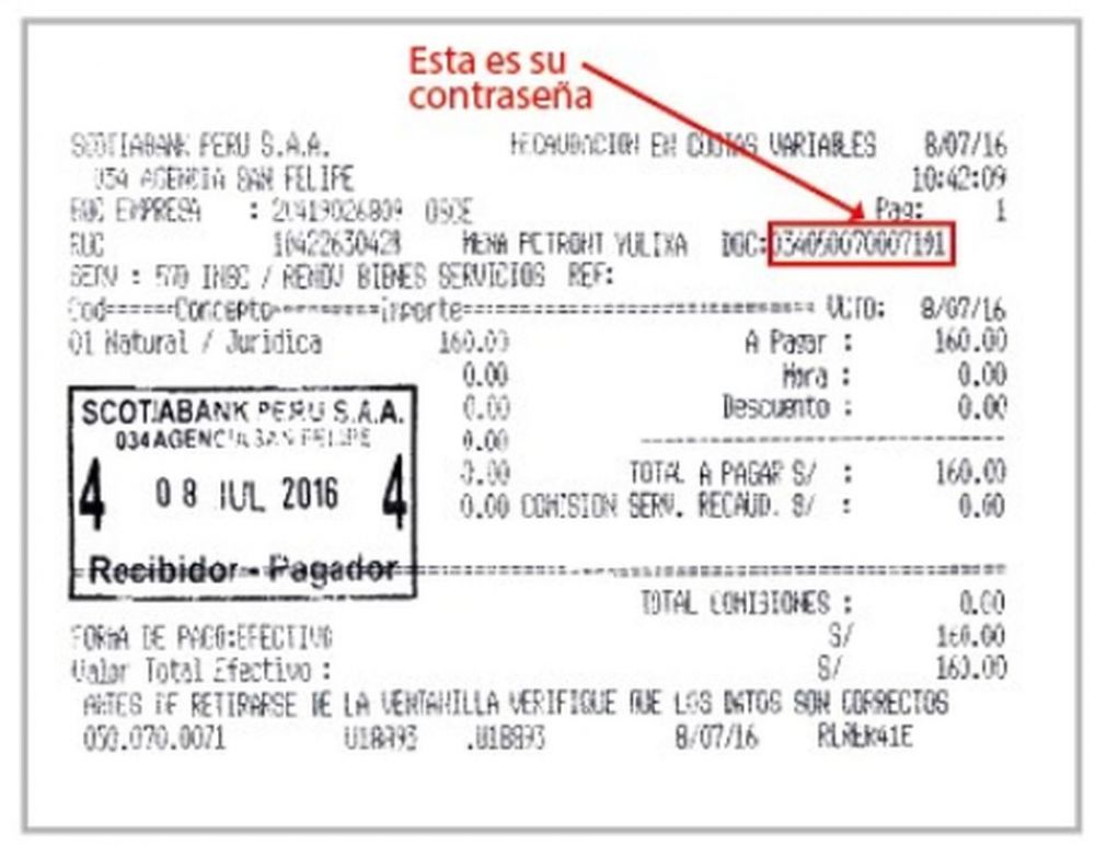 1. En el vóucher que le entregaron en el banco, aparecerá una clave con la cual iniciará el registro.